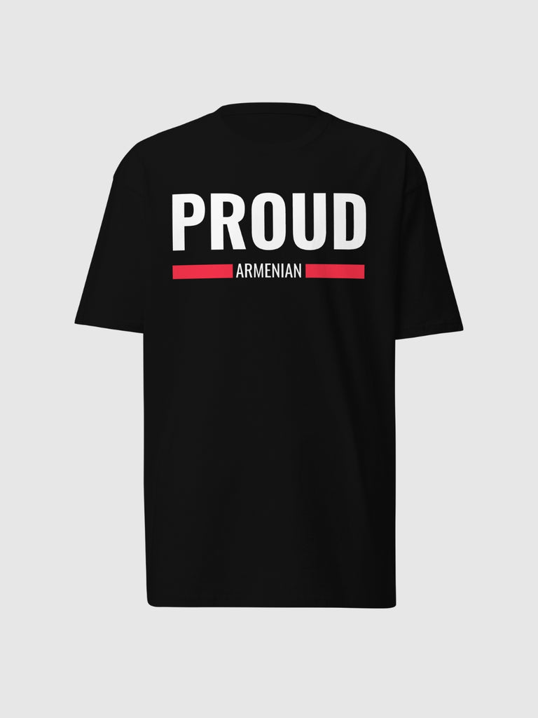T-Shirt: PROUD ARMENIAN across the chest, a must-have for every Armenian who is proud to be Armenian